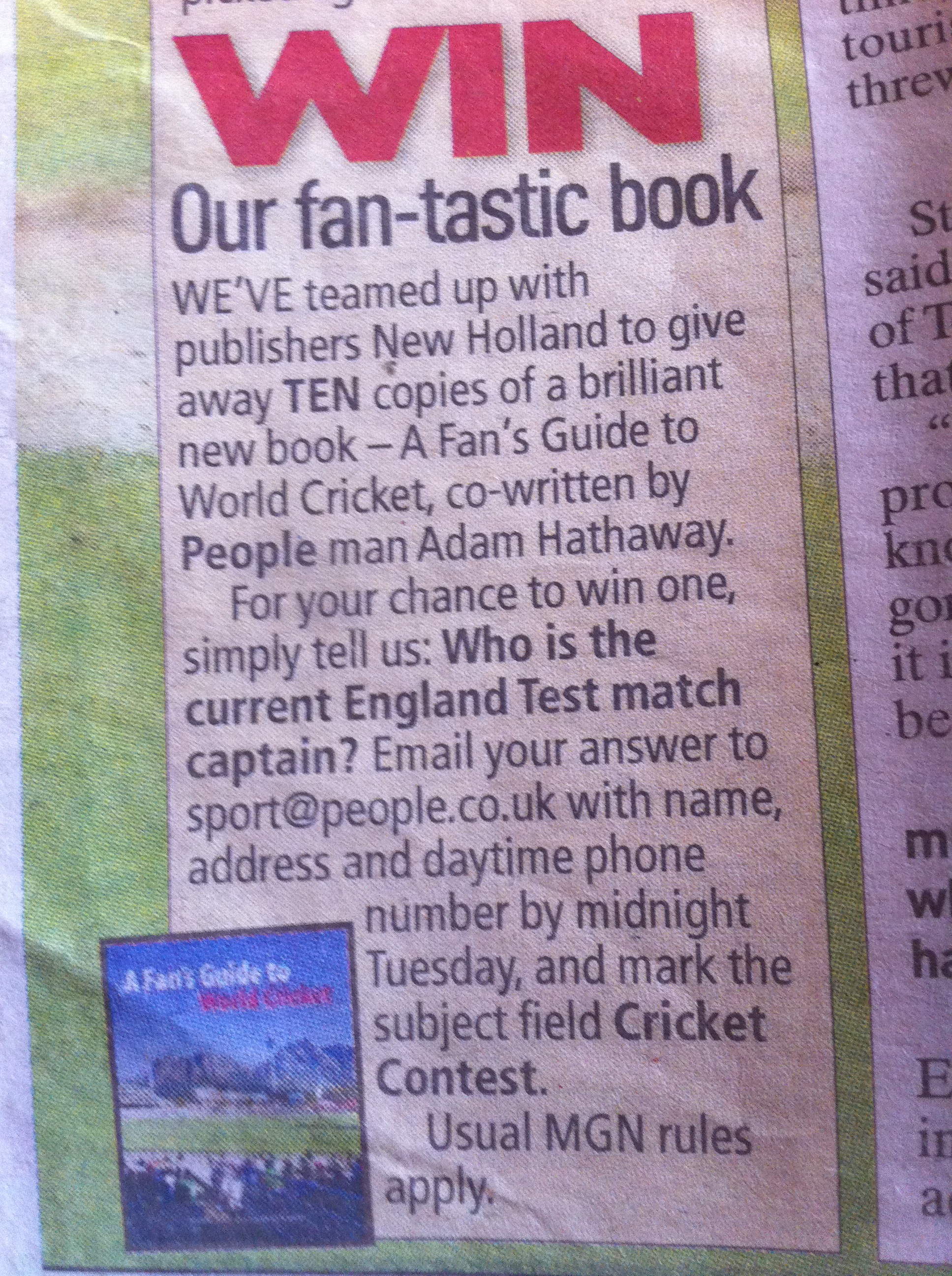 Win a copy of A Fan’s Guide of World Cricket, thanks to this competition that appeared in The People in September.